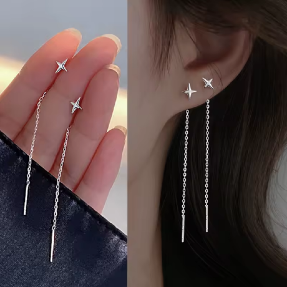 JWER S925 الفضة إبرة ستار خط القرط للنساء شرابة انخفاض القرط سلسلة طويلة الخرز ثقب القرط عدم التماثل الأذن مجوهرات
